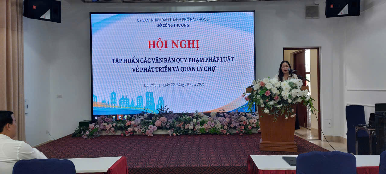 Sáng ngày 29/10/2025, tại khách sạn Đồng Xanh, phường Hải Dương, thành phố Hải Phòng, Sở Công Thương tổ chức Hội nghị tập huấn các văn bản quy phạm pháp luật về phát triển và quản lý chợ. Hội nghị có sự tham dự của lãnh đạo Sở Công Thương, đại diện các Sở, ngành, UBND các phường, xã, đặc khu, các doanh nghiệp, hợp tác xã và các đơn vị quản lý kinh doanh, khai thác chợ trên địa bàn thành phố.