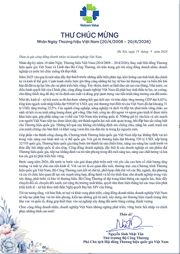 Thư chúc mừng ngày thương hiệu Việt Nam 20/4/2008-20/4/2026